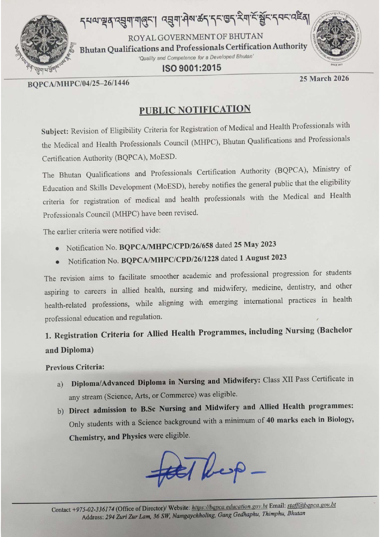 The launch ceremony of Bhutan Qualification and Professionals Certificate Authority was graced by Hon'ble Acting Secretary of MoESD and Hon'ble Commissioner, RCSC