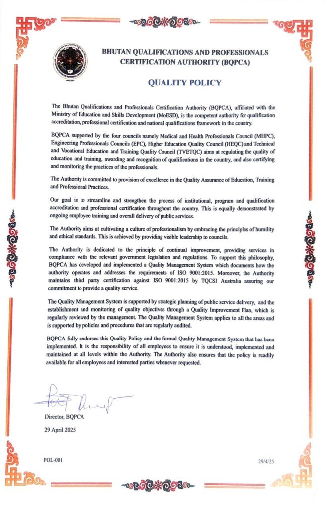 BQPCA QUALITY POLICY